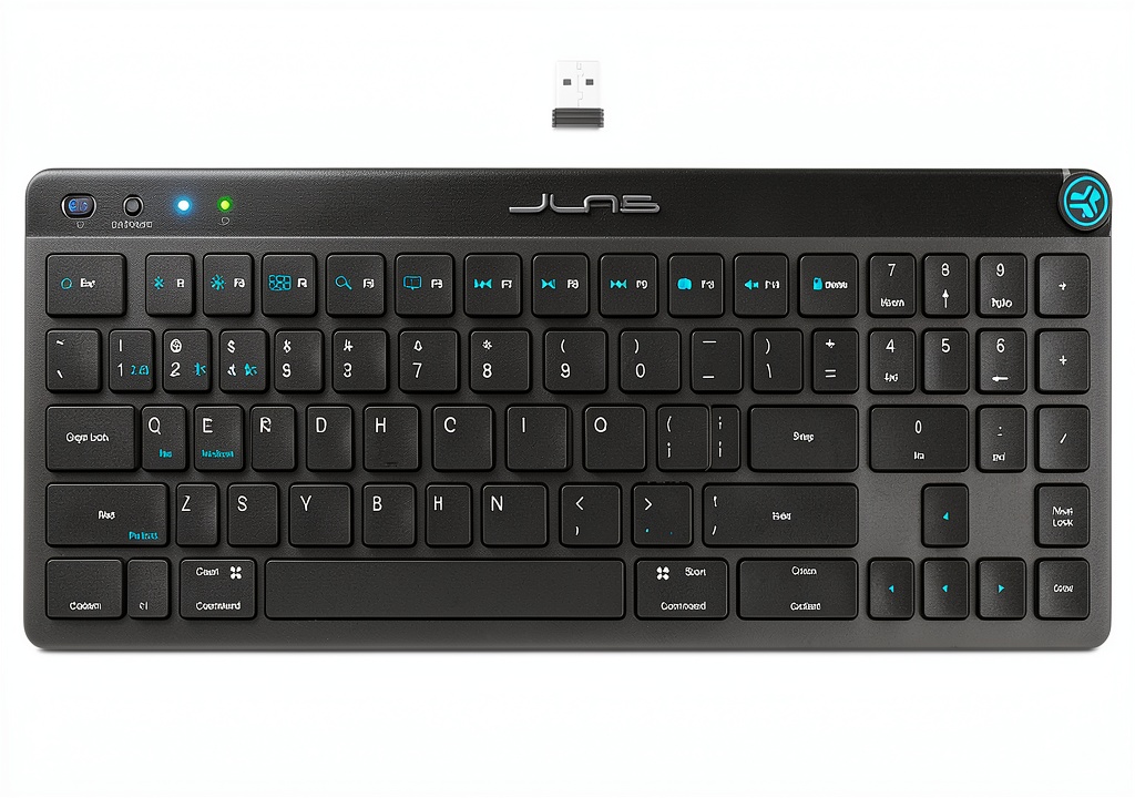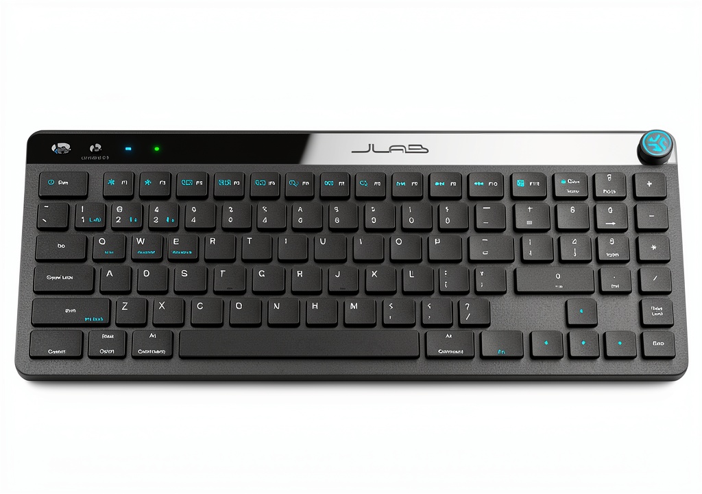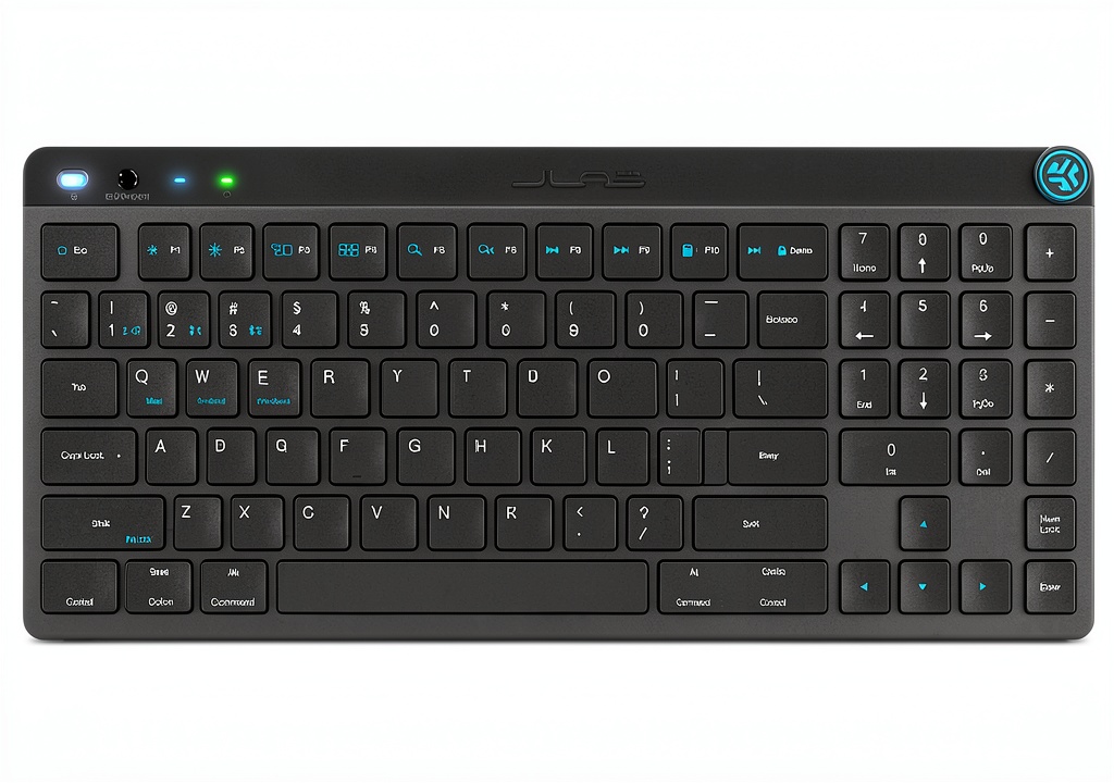 The JLab JBuds Wireless Keyboard in black is engineered for versatility and comfort, featuring a compact design with 95 keys that include a full numerical pad and function keys. It supports multiple connection methods, including Bluetooth 5.2 and USB, allowing easy pairing with various devices. Crafted with low-profile, soft touch keys, it reduces noise during typing and is built with durable materials for long-lasting use. The keyboard includes a smart media knob for quick audio adjustments and comes with 100% recyclable packaging, emphasizing environmental responsibility.
