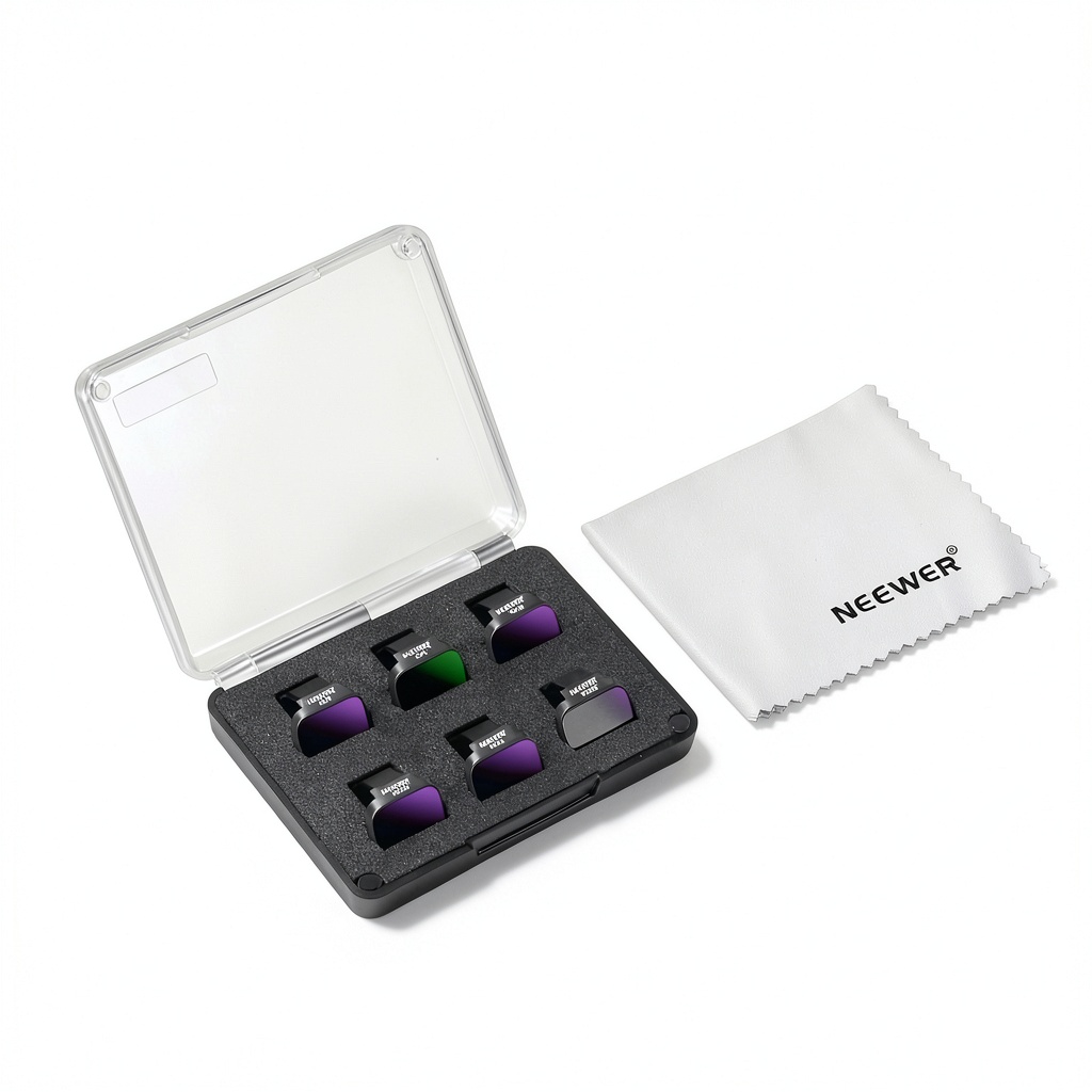 The Neewer 6-pack ND/CPL filter set is a comprehensive accessory kit for DJI drones, including the Mini 4K, Mini 2, Mavic Mini, Mini SE, and Mini 2SE models. This set features five neutral density filters (ND8, ND16, ND32, ND64, ND256) and one circular polarizer, all constructed from premium multi-coated HD optical glass. The filters are designed to be waterproof, scratch-resistant, and dust-proof, ensuring long-lasting optical clarity and sharp image quality. With light reduction capabilities ranging from 3 to 8 stops, these filters help achieve balanced exposure and cinematic motion blur in various lighting conditions, making them essential for drone photographers and videographers.