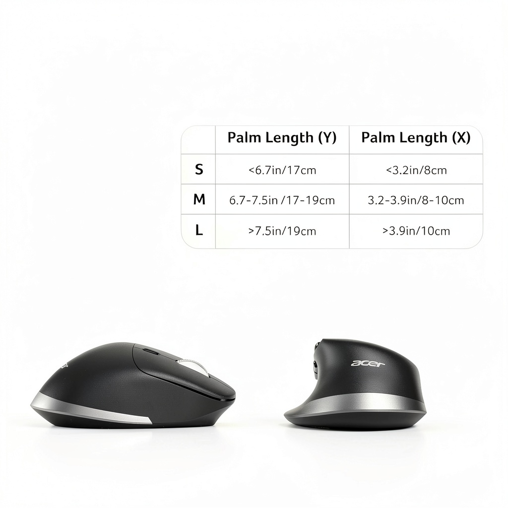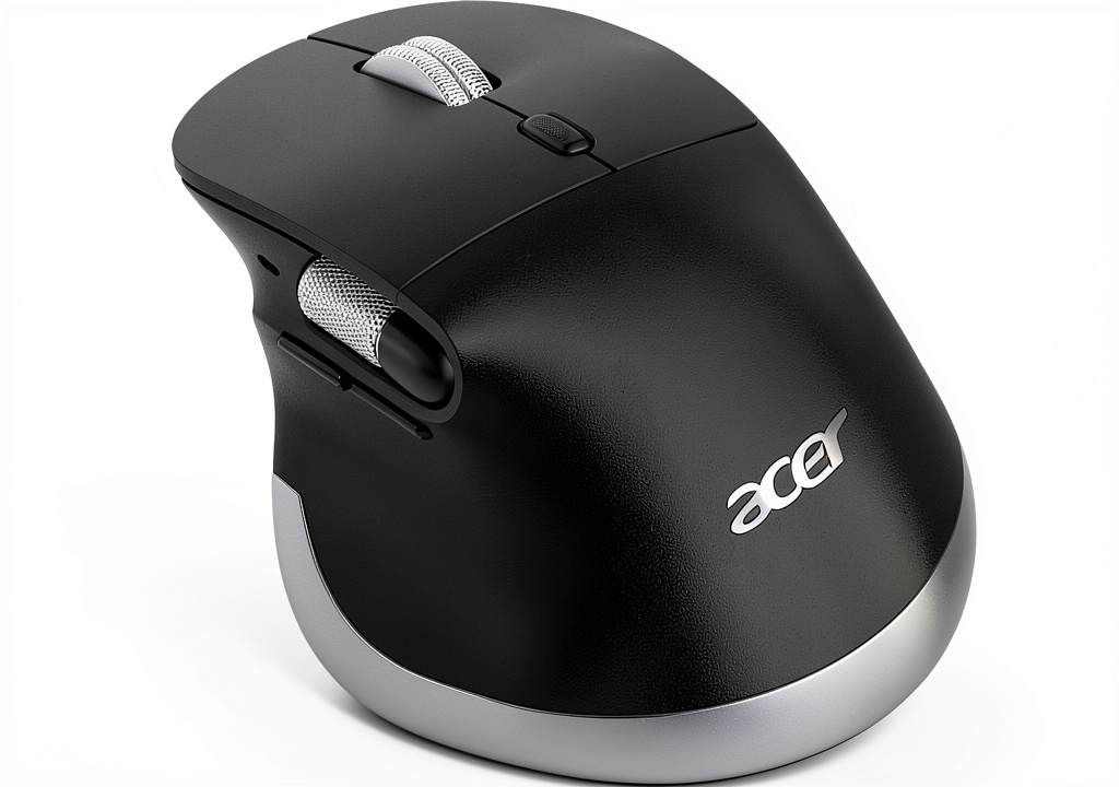 The Acer Ergonomic Wireless Mouse combines advanced connectivity and user-centered design to elevate your computing experience. This rechargeable mouse supports dual-mode operation with Bluetooth 5.2 and 2.4GHz wireless, allowing effortless switching across three devices. Crafted for durability and comfort, it features an ergonomic shape that mimics a natural handshake position, promoting neutral wrist alignment to minimize fatigue during extended use. With six adjustable DPI levels ranging from 800 to 4800, a dedicated side scroll wheel for horizontal navigation, and intuitive forward/back buttons, it delivers precision and efficiency for various tasks. Specifications include a sleek black finish, long-lasting battery life, and compatibility with most operating systems, making it a versatile accessory for modern workflows.