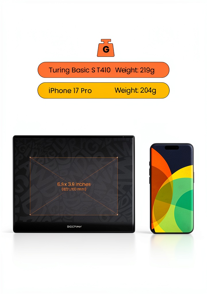 The DigiDraw T410 is a professional-grade drawing tablet designed for digital artists, illustrators, and designers. It features a 6.3 x 3.9-inch active area within an ultra-thin, portable frame measuring just 8.66 x 6.52 x 0.30 inches. The tablet includes the advanced Magic Pen 3.0, a battery-free stylus with 16,384 pressure levels, 5080 LPI resolution, and a 300 PPS report rate for smooth, accurate line work. With USB-C connectivity, it ensures zero-latency performance across Windows, macOS, ChromeOS, and Android 14+ devices. The textured surface mimics real paper, and the curved palm rest enhances comfort during extended use.