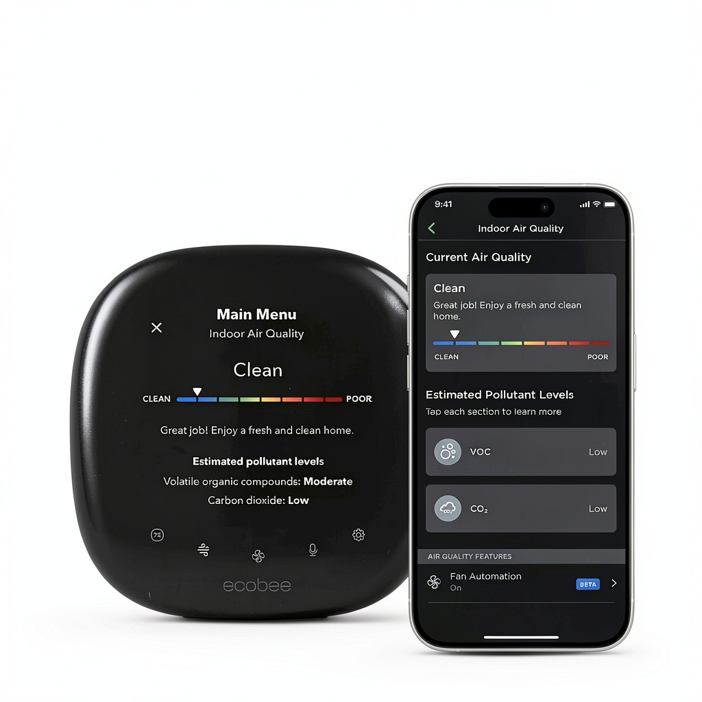Basic functions like temperature control and air quality monitoring are included, but features such as smart security alerts and open window detection require an ecobee Smart Security subscription.