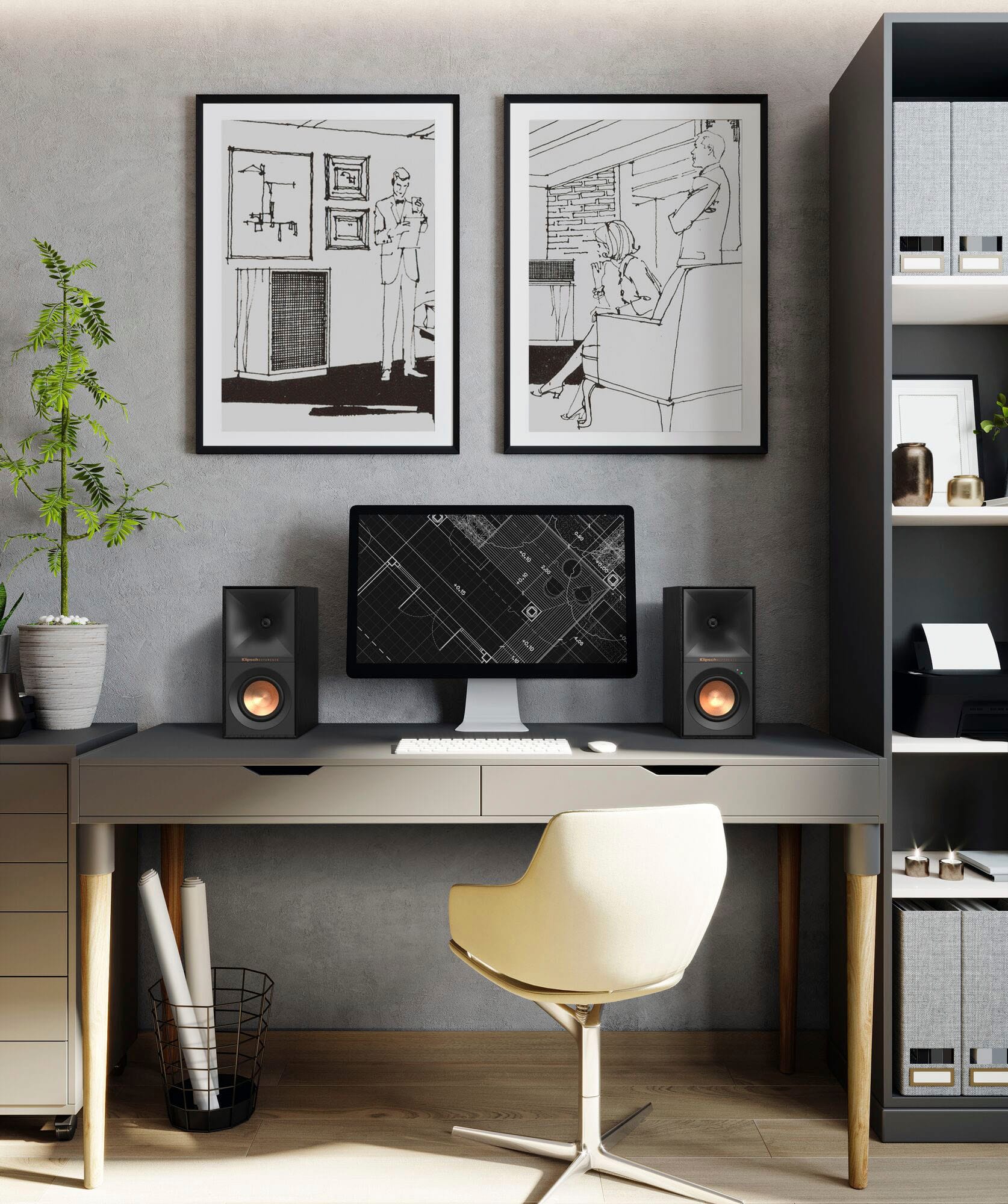 The Klipsch R 40PM Reference Series powered speakers are a pair of high-performance audio devices designed for exceptional sound clarity and versatility. Each speaker features a 4-inch woofer and 35W of power, delivering balanced audio with minimal distortion. Constructed with durable materials and a sleek black finish, these speakers integrate advanced acoustic technology to reproduce detailed highs and mids, making them suitable for various listening environments. Key specifications include a two-way design, built-in amplification, and multiple input options for seamless connectivity to sources like computers, turntables, and streaming devices.