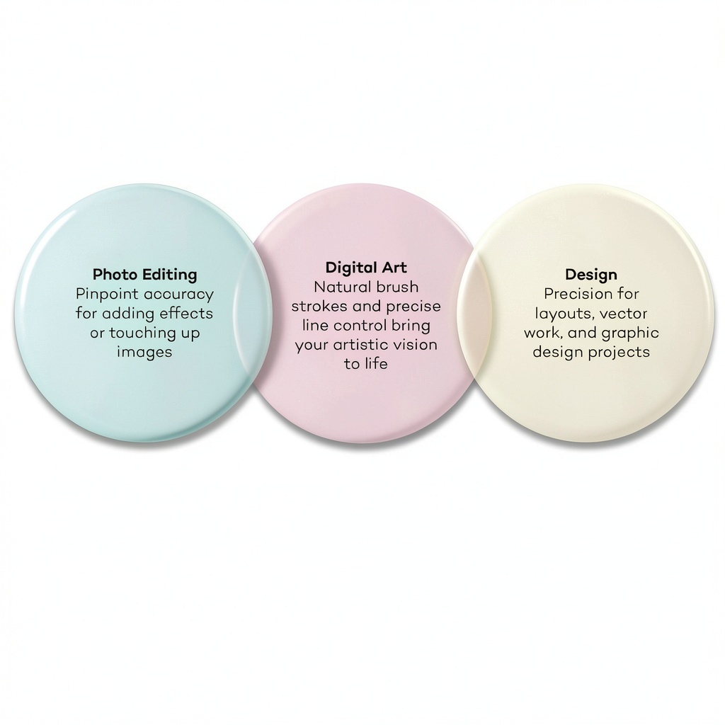 This drawing tablet is ideal for various creative environments, such as home studios, offices, and educational settings. It suits digital artists, graphic designers, illustrators, and students working on projects like sketching, animation, and photo retouching. Whether for professional work or hobbyist activities, the tablet enhances workflow by providing a natural drawing experience. Its wireless capability allows for flexible setup, reducing clutter and improving mobility in workspaces.