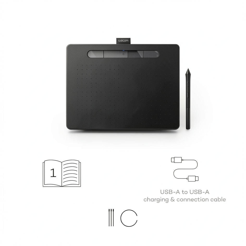 The Wacom Intuos Graphic Drawing Tablet in Medium size is designed for digital artists and creators, offering a responsive surface and wireless connectivity. It includes essential software to get started with drawing, photo editing, and design tasks. Built with durable materials, this tablet features a sleek black finish and supports pressure-sensitive input for precise control. Specifications include compatibility with Mac, PC, Chromebook, and Android devices, ensuring broad usability across different platforms.